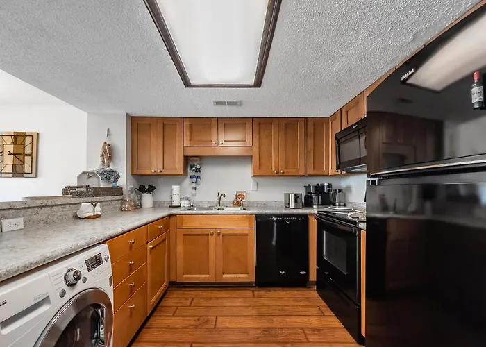 Spacious Pool View Condo! Short Walk To Beach! Sea Mark Tower 204 villa has a fully furnished kitchen plus an oven and a dishwasher in it. Serving American specialties, Mariner Pizza is about 5 minutes' walk away. Spacious Pool View Condo! Short Walk To Beach! Sea Mark Tower 204 villa is also a 19-minute drive from Myrtle Beach International airport.